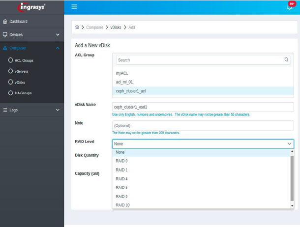 Ceph is deployed on commodity hardware and built on multi-petabyte storage clusters. It is highly flexible due to its distributed nature. EBOF use in a Ceph cluster enables added storage capacity to scale up and scale out at an optimized cost and facilitates high-bandwidth utilization of SSDs. A typical rack-level Ceph solution includes a networking switch for client, and cluster connectivity; a minimum of 3 monitor nodes per cluster for high availability and resiliency; and Object Storage Daemon (OSD) host for data storage, replication, and data recovery operations. Traditionally, Ceph recommends 3 replicas at a minimum to distribute copies of the data and assure that the copies are stored on different storage nodes for replication, but this results in lower usable capacity and consumes higher bandwidth. Another challenge is that data redundancy and replication are compute-intensive and add significant latency. To overcome all these challenges, Ingrasys has introduced a more efficient Ceph cluster rack developed with management software – Ingrasys Composable Disaggregate Infrastructure (CDI) Director.