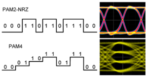 Figure 1: The comparison of waveforms and eye diagrams between NRZ and PAM4 signals