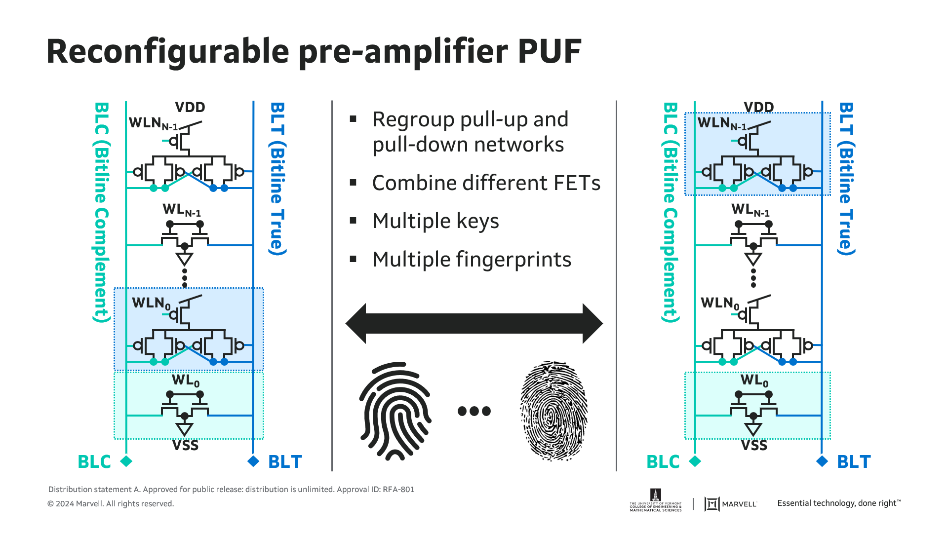 The reconfigurable PUF and random number generation technology was created as part of an industry-academia collaboration. I’m a senior staff manager at Marvell working on my Ph.D. at the University of Vermont (UVM). UVM is a Tech Hub for semiconductor research under the CHIPS and Science Act, which authorized $10 billion in funding for the Tech Hubs Program. This funding is helping companies build strong relationships with local flagship universities to deepen collaboration and push technology forward.