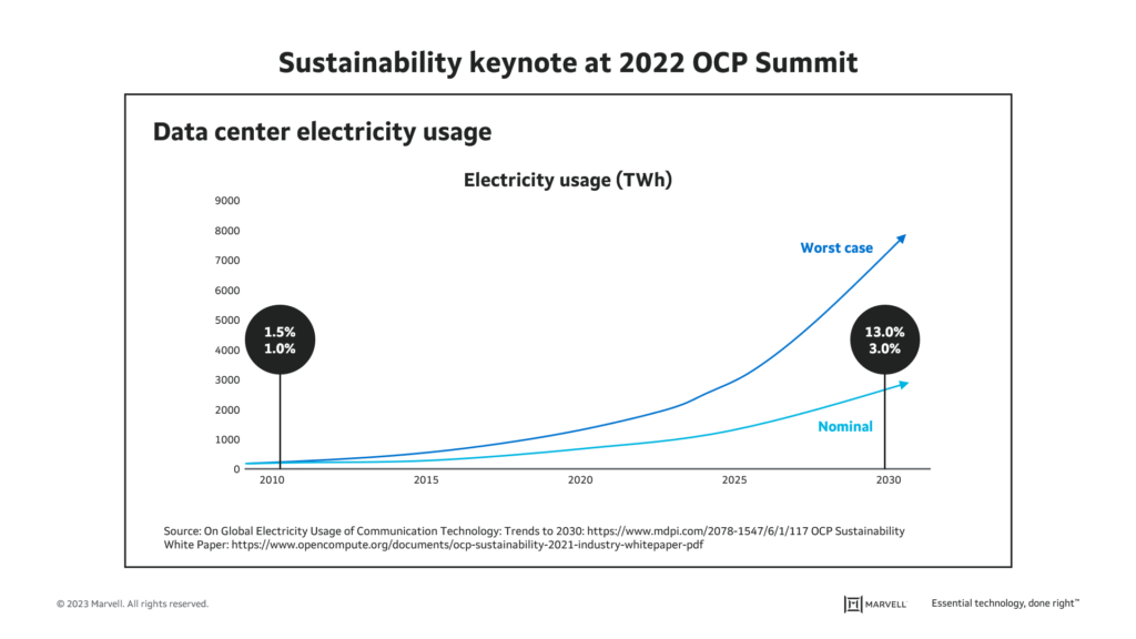 This is a problem for operators, as suggested at the bottom of the figure. Why? Because whereas networking does not always generate revenue, computing does. Power consumed by networking is power that would otherwise be available for revenue-generating servers and the applications that run on them. As described in Google’s keynote at OCP Summit in October 2022, a new class of custom silicon is needed to achieve improved networking power and cost efficiencies.