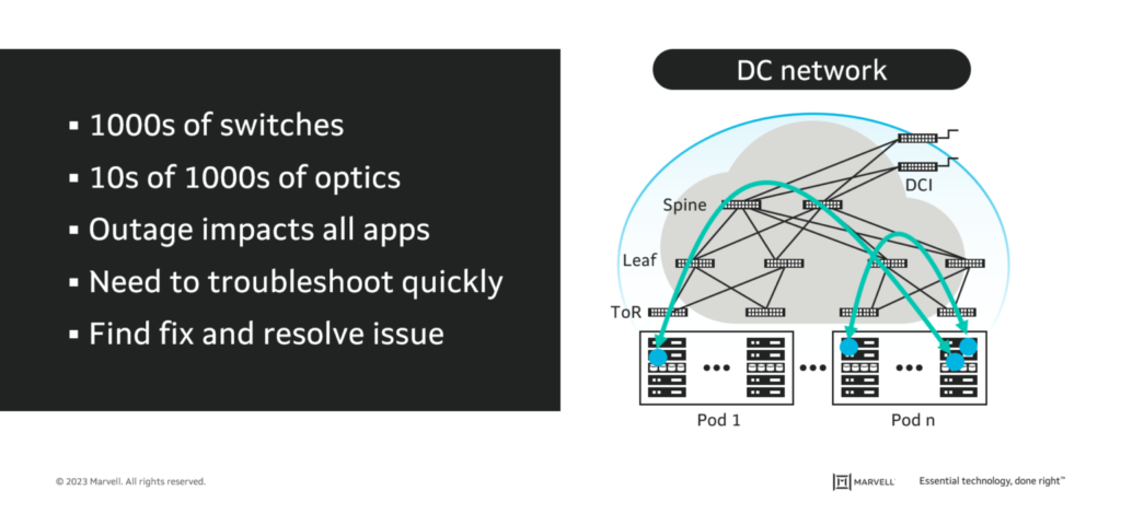 In a mega-scale data center, there are typically thousands of network switches and tens of thousands of optical modules connecting them. If a server fails, only applications running on that server are affected. By contrast, when a network module or switch fails, it can potentially impact every application running in the data center.