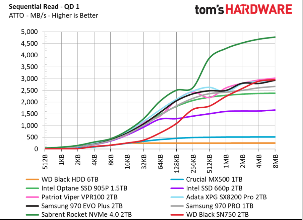 The sustained read will indicate how fast the game can load and how effective is the new assets loading time during a game; the faster it is, the quicker your GPU can process the data and render it to the screen, providing better overall gaming experience.